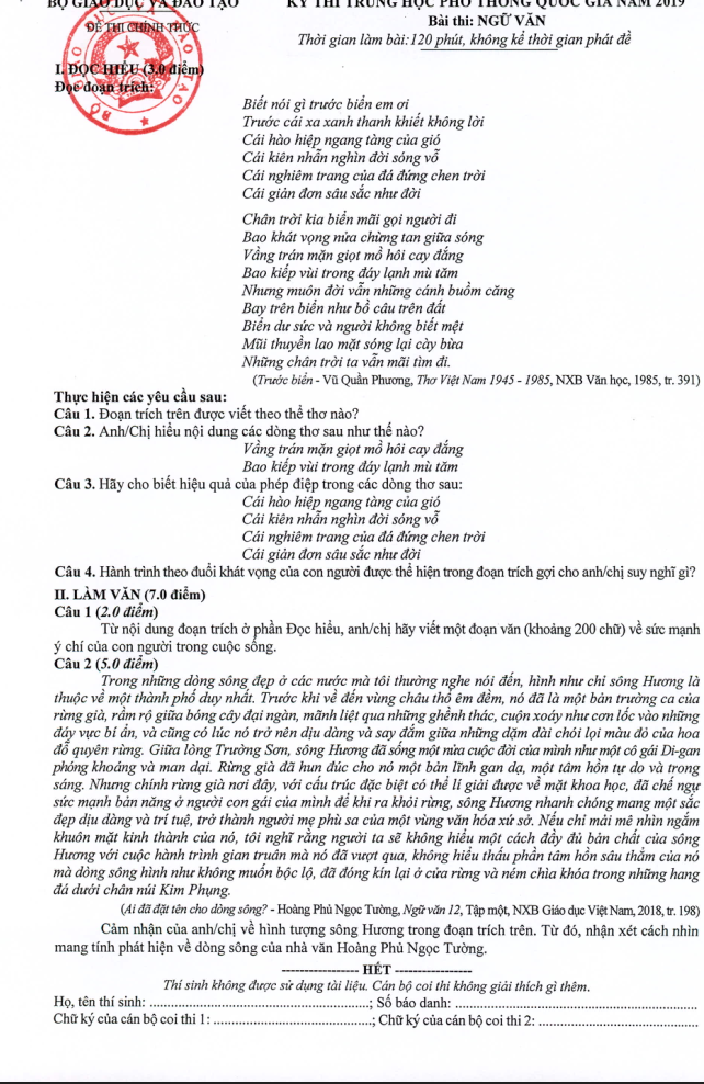 Bộ GD-ĐT công bố đáp án môn Ngữ văn thi THPT quốc gia 2019