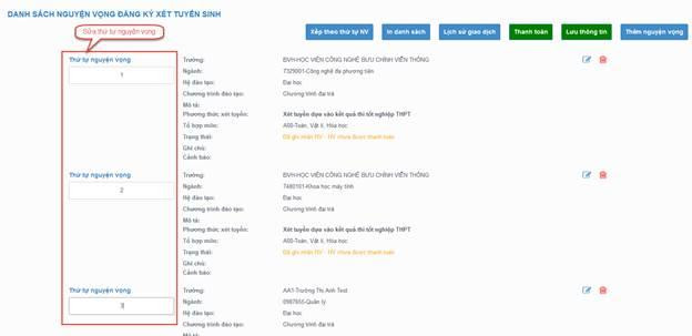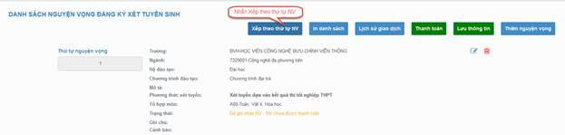 Bước 1: Nhấn Xếp theo thứ tự nguyện vọng: