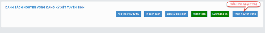 Bước 1: Thí sinh nhấn Thêm nguyện vọng: