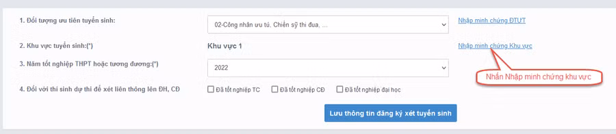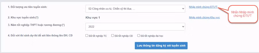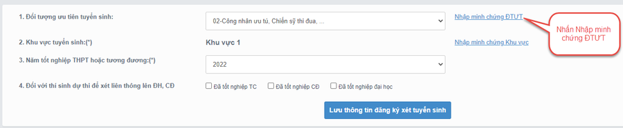 Bước 3: Nhấn Nhập minh chứng đối tượng ưu tiên: