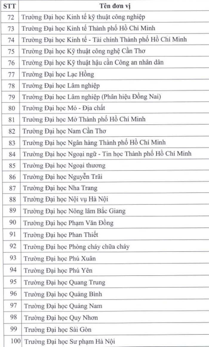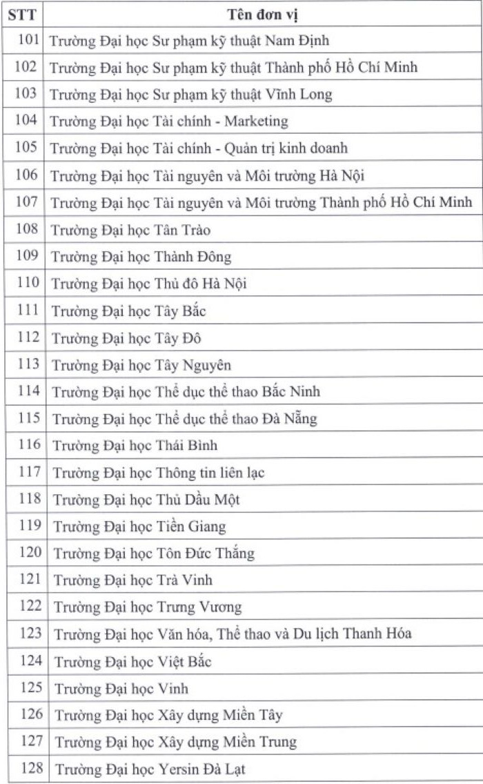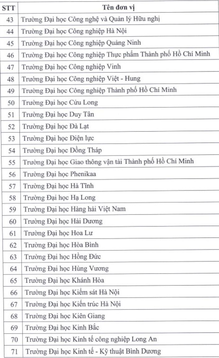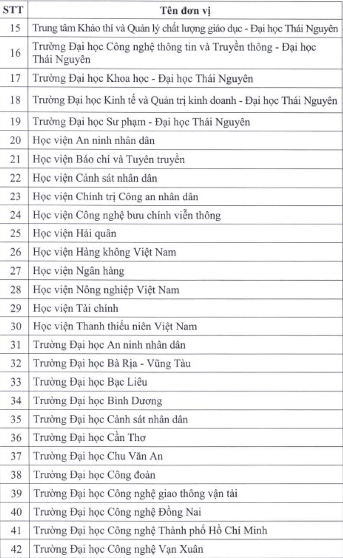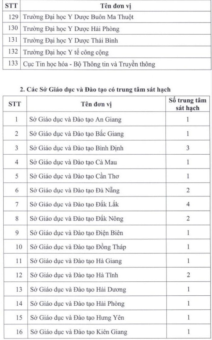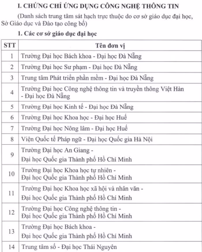 Cùng với danh sách này, Bộ GD&ĐT cũng công bố danh sách các đơn vị được tổ chức thi, cấp chứng chỉ ứng dụng công nghệ thông tin.