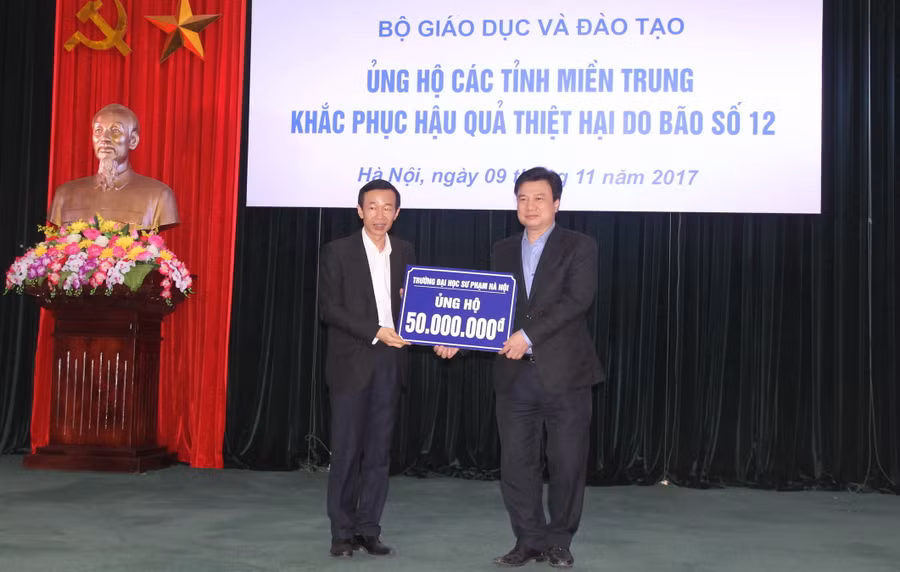 Tính đến chiều 9/11, Bộ GD&ĐT đã nhận được số tiền trên 2,1 tỉ đồng đến từ các cán bộ, công chức, viên chức, người lao động trong cơ quan Bộ, các đơn vị trực thuộc Bộ, các trường đại học. Trong đó: Đại học Sư phạm (50 triệu đồng), Đại học Giao thông Vận tải (50 triệu đồng), Đại học Xây dựng (50 triệu đồng), Đại học Sư phạm Nghệ thuật Trung ương (40 triệu đồng) Đại học Kinh tế quốc dân (100 triệu đồng), Nhà xuất bản Giáo dục Việt Nam (50 triệu đồng)...