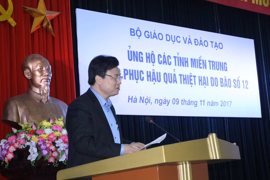 Tại lễ phát động, Thứ trưởng Bộ GD&ĐT Nguyễn Hữu Độ đề nghị cán bộ, công chức, viên chức, người lao động trong cơ quan Bộ và các đơn vị trực thuộc Bộ ủng hộ ít nhất mỗi người một ngày lương. Số tiền đóng góp ủng hộ sẽ sớm được chuyển đến các địa phương và các gia đình để góp một phần nhỏ, giúp sớm ổn định cuộc sống của đồng bào trong bão lũ.