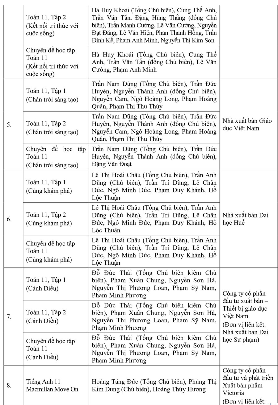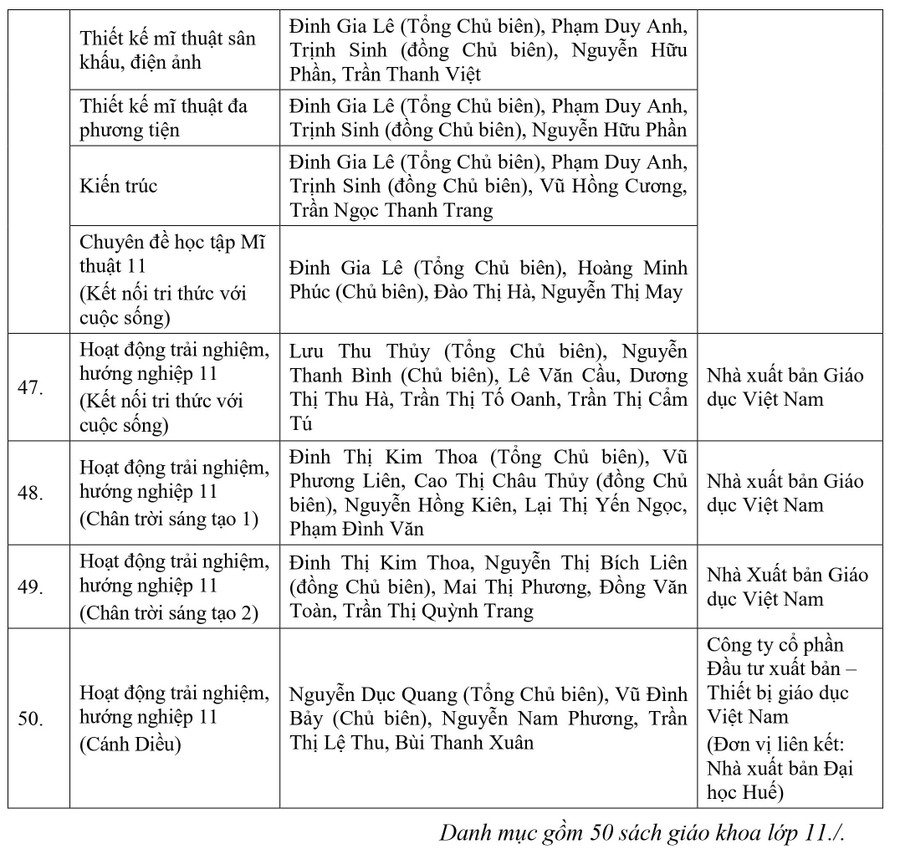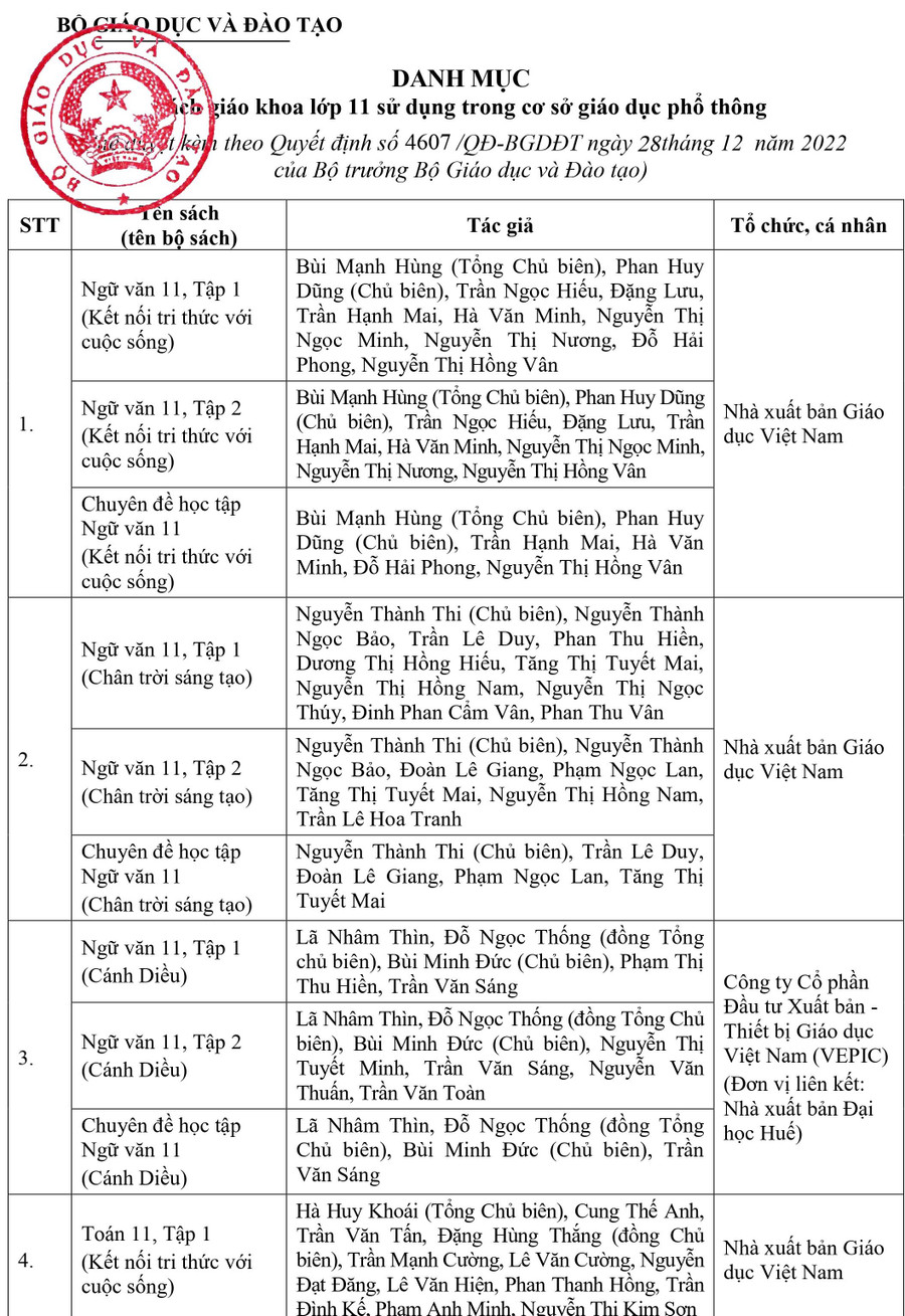 Danh mục được phê duyệt gồm 50 đầu sách giáo khoa, cụ thể như sau: