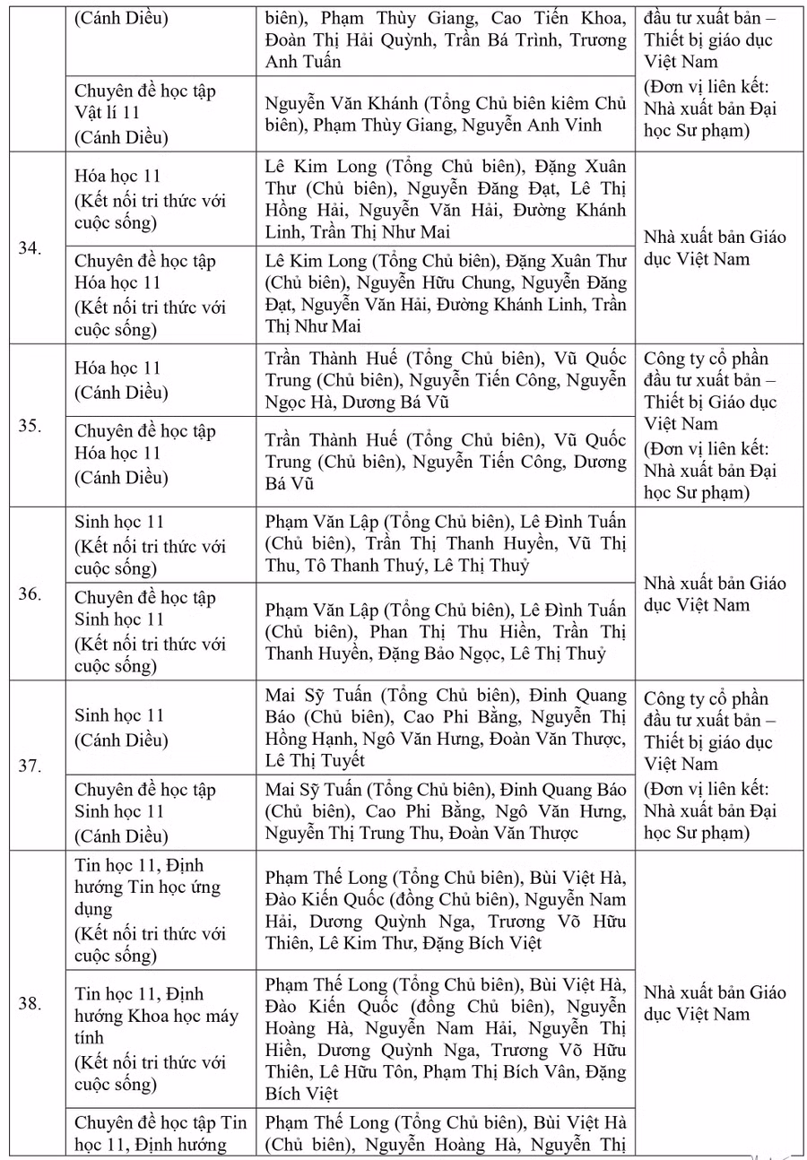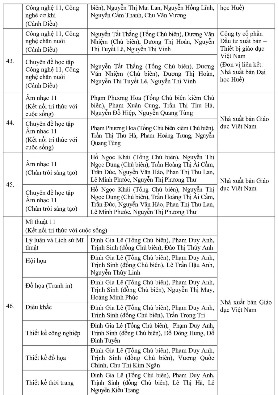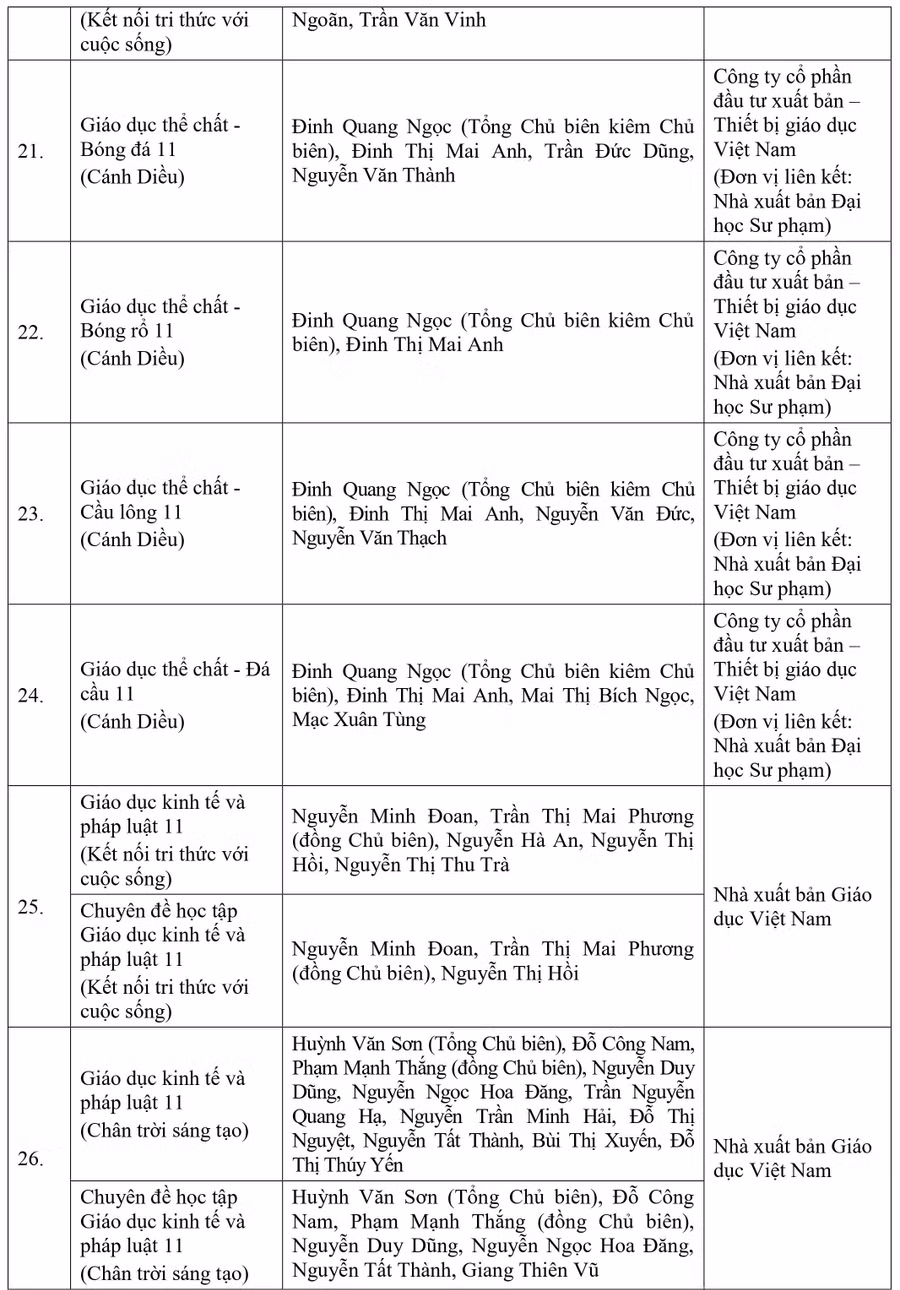Danh mục được phê duyệt gồm 50 đầu sách giáo khoa, cụ thể như sau: