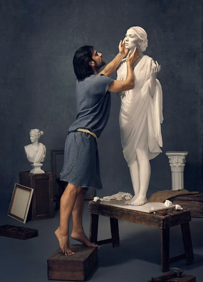Hiệu ứng Pygmalion được đặt tên theo một truyền thuyết Hy Lạp thời xưa, thời có một nhà điêu khắc tài ba tên là Pygmalion. Với búa và dùi, ông đã tạo ra một bức tượng hoàn hảo, một người phụ nữ đẹp nhất mà bạn từng thấy. Pygmalion không thể không ngắm nhìn nó mỗi ngày, ông nói chuyện và chăm sóc cho nó như thể đó là một thực thể sống. Và một ngày kia, phép màu xảy ra, bức tượng biến thành người thật.