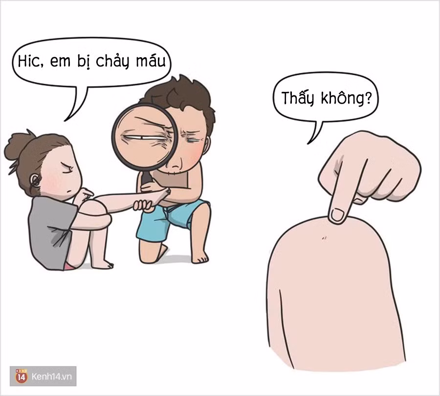 Bình thường lắm cô nàng oai phong hùng dũng lắm, thế mà trước mặt người yêu, mới đau một tí đã xuýt xoa, mếu máo