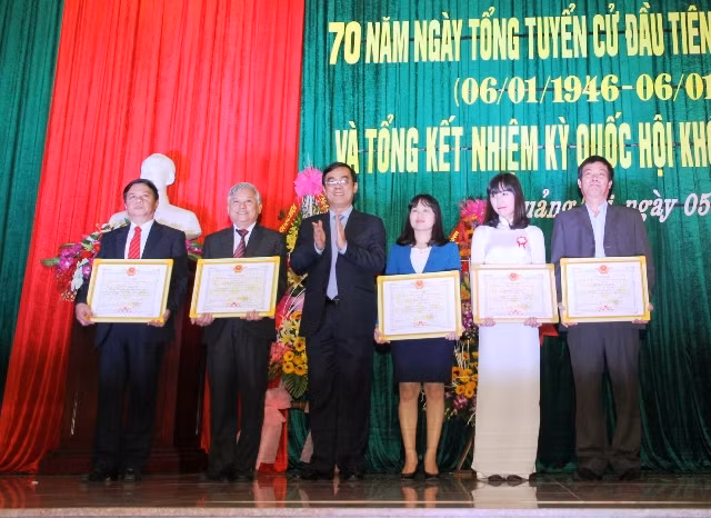 Tại buổi lễ, đại biểu Quốc hội tỉnh Quảng Trị qua các thời kỳ cùng nhau ôn lại truyền thống vẻ vang của Quốc hội Việt Nam 70 năm qua.