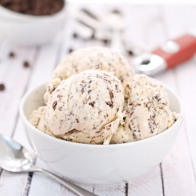 7, Đổ whipping cream vào hỗn hợp sữa trứng, trộn thật kĩ rồi cho vào hộp sạch đậy kín, bỏ vào ngăn đá tủ lạnh từ 1 – 2 tiếng là có thể lấy ra thưởng thức.