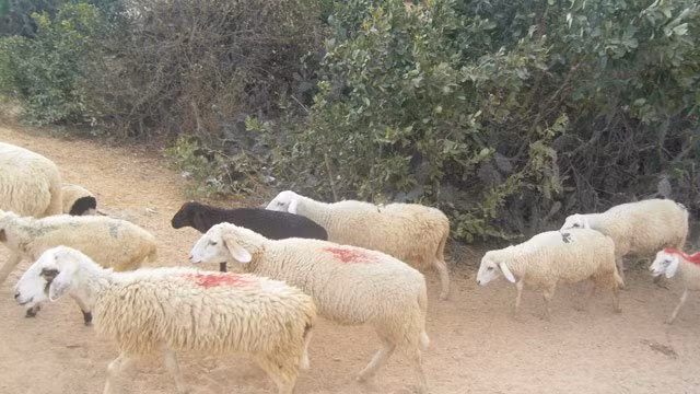 Cừu được bôi màu xanh, đỏ trên đầu, lưng để đánh dấu.