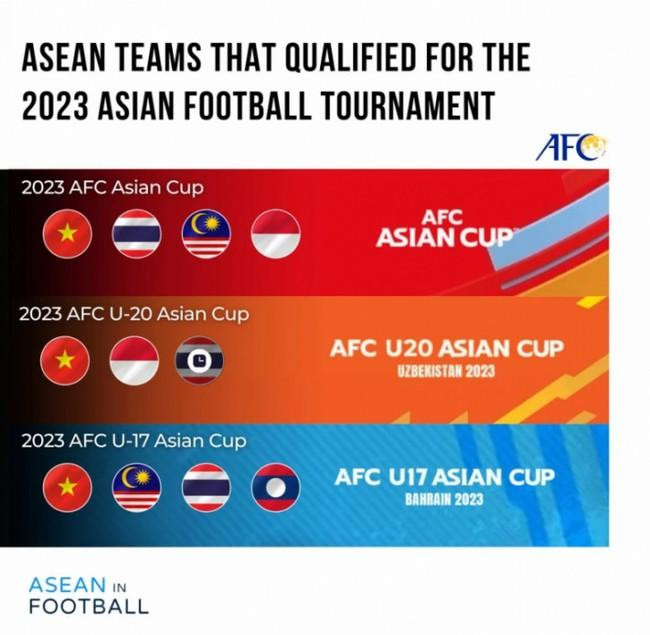 Cụ thể, Việt Nam là quốc gia duy nhất tại Đông Nam Á trong năm 2022 giành “hat-trick” vé đi tiếp ở 3 giải đấu lớn thuộc AFC gồm: Asian Cup 2023, VCK U20 châu Á 2023 và VCK U17 châu Á 2023.