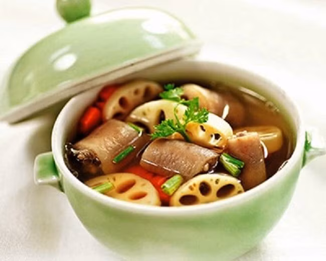 Củ sen, xương dê, gừng hành, gia vị vừa đủ hầm ăn. Món này tác dụng bổ thận kiện tỳ dưỡng tâm, rất tốt cho trẻ bị mơ màng tiểu dầm.