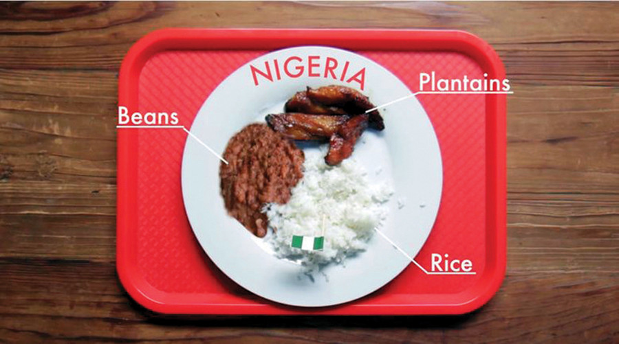 Các nhà trường ở Nigeria rất hay nấu món plantains (một thứ trái cây giống chuối) cho học sinh. Món này được ăn kèm với cơm và đậu.