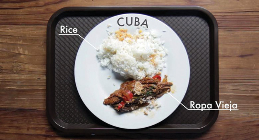 Món ăn ưa chuộng nhất trong các nhà trường Cuba là Ropa Vieja (món rau nấu với thịt lợn rừng từ Quần đảo Canaria). Món này thường được ăn kèm cơm và nước sốt.