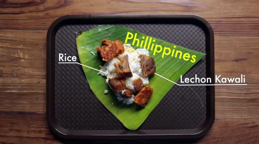 Món ăn học đường phổ biến nhất ở Philippines là Lechon Kawali (thịt lợn ba chỉ rán trong dầu) và cơm.