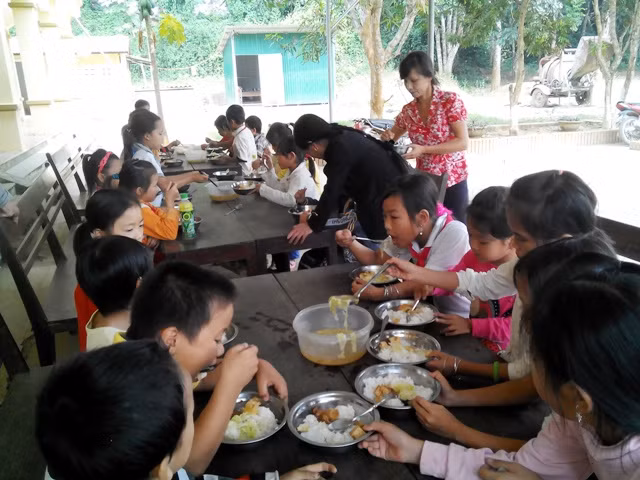 Đón nhận tin vui này, các thầy cô trong trường đã tự nhận luôn nhiệm vụ làm ... đầu bếp nhằm tiết kiệm kinh phí, giúp học sinh có thêm 2 bữa trưa tại trường.