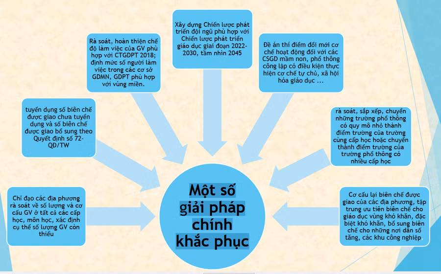 Một số địa phương bị động về nguồn tuyển dụng. Chính sách thu hút giáo viên ở địa bàn khó khăn còn hạn chế. Bố trí giáo viên Tiếng Anh, Tin học và Công nghệ dạy liên trường, liên cấp còn nhiều bất cập. Nhân lực y tế trường học còn thiếu dẫn đến phải huy động hầu hết cán bộ, giáo viên kiêm nhiệm công tác phòng, chống dịch.