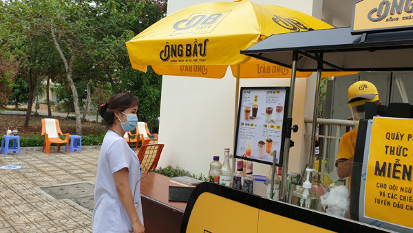 Không chỉ có mặt ở bệnh viện dã chiến Củ Chi, cà phê Ông Bầu còn có mặt tại bệnh viện điều trị Covid-19 tại Cần Giờ, nơi cách xa trung tâm thành phố khoảng 60km để tiếp sức cho các y bác sĩ nơi đây.
