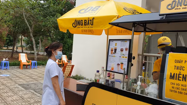 Những ngày giữa tháng 4/2020 tại khu cách y dành riêng cho các y bác sĩ trong khuôn viên Bệnh viện dã chiến Củ Chi và Bệnh viện điều trị Covid-19 Cần Giờ có vẻ rộn ràng hơn bởi sự xuất hiện của một chiếc xe cà phê lưu động màu vàng rực rỡ. Đây chính là xe cà phê phục vụ miễn phí của thương hiệu cà phê Ông Bầu dành tặng riêng cho các y bác sĩ đang làm việc tại các bệnh viện điều trị Covid-19 cách xa trung tâm thành phố.