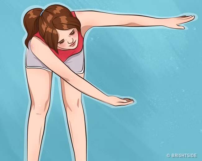 Từ từ mở rộng 2 cánh tay sang 2 bên, sau đó đưa trở lại về phía trước. Lặp lại động tác 20 lần.