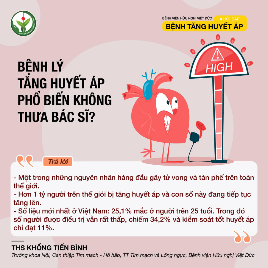 Bệnh viện Hữu nghị Việt Đức thông tin chi tiết trả lời những băn khoăn về bệnh lý tăng huyết áp, người bệnh cần lưu ý.