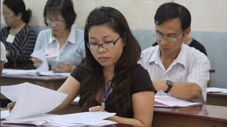 Theo quy định của Bộ GD&ĐT, khi chấm bài thi tự luận phải tiến hành nghiên cứu, thảo luận kỹ về đáp án, biểu điểm và thực hiện nghiêm túc khâu chấm chung ban đầu theo quy định của Quy chế thi. Bố trí cán bộ chấm thi chấm lần thứ nhất và lần thứ hai ngồi ở 2 phòng chấm khác nhau.