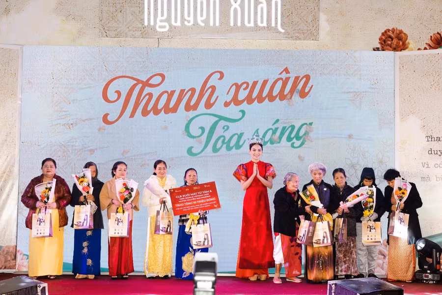 Nàng hậu sinh năm 1999 còn được biết đến với danh hiệu “người đẹp nhân ái” cùng những hoạt động thiện nguyện, gắn bó cộng đồng. Vì vậy, lần này trở về, cảm phục những hi sinh của các o, các mệ, cùng với lòng cảm thương cho những hoàn cảnh khó khăn, Mai Phương cùng Câu lạc bộ thiện nguyện Suối Mát Từ Tâm đã trao tặng 10 triệu đồng cùng 10 phần quà và các bó hoa tươi thắm đến với 10 gia đình tiểu thương có hoàn cảnh khó khăn do Covid-19 ở chợ Đông Ba.