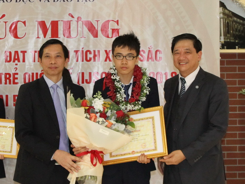 Chúc mừng thành tích của đoàn học sinh Việt Nam tại kì thi IJSO, ông Phạm Xuân Tiến - Phó Giám đốc Sở GD&ĐT Hà Nội khẳng định: Thành tích của đoàn là niềm tự hào của đất nước, của Thủ đô, là niềm tự hào của gia đình và nhà trường.