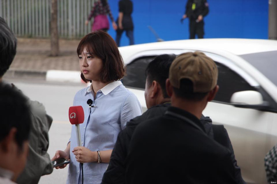 Nữ phóng viên xinh đẹp xuất hiện tại ga Đồng Đăng khiến nhiều trái tim "tan chảy" vì nụ cười tỏa nắng. Nữ phóng viên có tên Im Hye Jun, làm việc tại hãng thông tấn Hàn Quốc Yonhap.