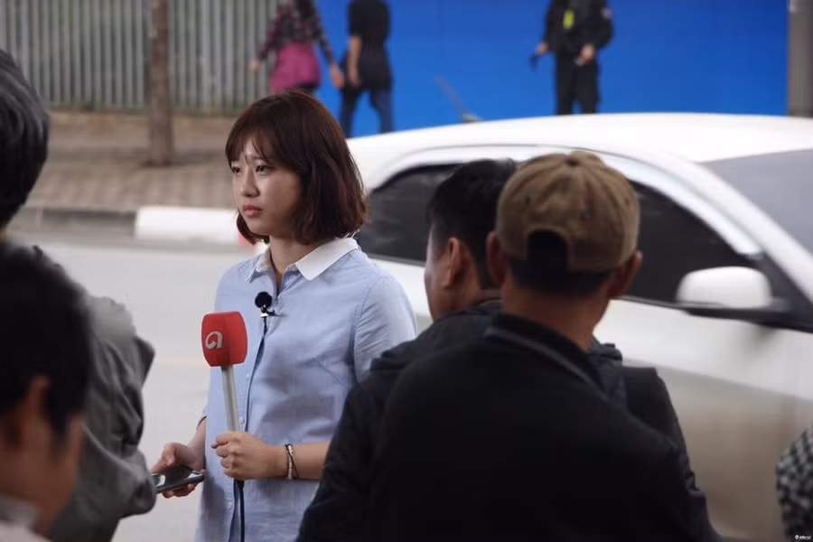 Nữ phóng viên xinh đẹp xuất hiện tại ga Đồng Đăng khiến nhiều trái tim "tan chảy" vì nụ cười tỏa nắng. Nữ phóng viên có tên Im Hye Jun, làm việc tại hãng thông tấn Hàn Quốc Yonhap.