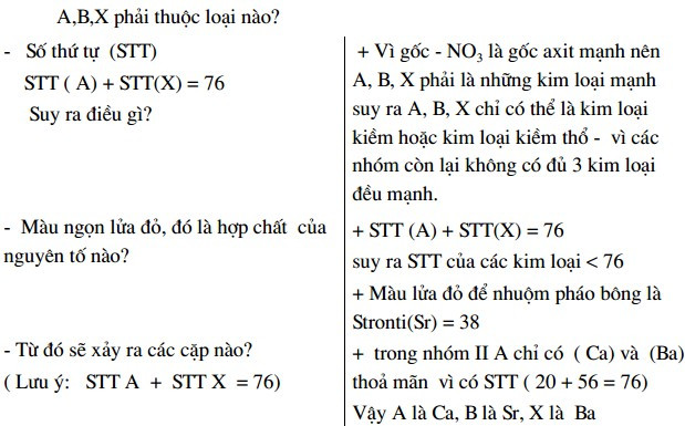 Phân chia trường hợp (kết hợp với phân tích định tính) để loại trừ các hợp chất có liên quan, tìm ra tên các chất. Cuối cùng, viết phương trình biểu diễn mối quan hệ các chất, ví dụ: