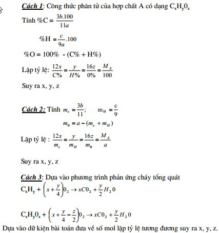 Dạng 5: Lập công thức phân tử của hợp chất hữu cơ gồm các nguyên tố: C, H, O: