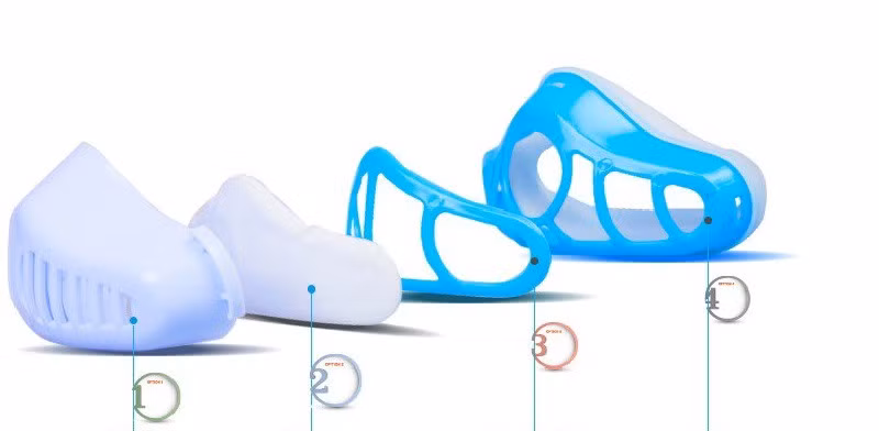 Kết cấu mặt nạ bao gồm kính bảo vệ mắt trong suốt, khẩu trang, hộp lọc bụi, bông lọc, dây đeo và van thở thông minh. Mặt nạ được làm từ silicon mềm, không mùi và ôm sát khuôn mặt.