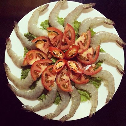 Với hải sản như tôm, bề bề... bạn có thể chọn đĩa hình tròn và xếp thành vòng tròn như thế này.