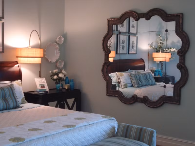 Nhiều người lầm tưởng lắp gương trong phòng ngủ sẽ tạo cho không gian rộng hơn, có chiều sâu hơn. Nhưng đó là một điều lầm tưởng, bởi theo phong thủy thì cuộc hôn nhân của bạn sẽ gặp khó khăn khi lắp gương theo cách như vậy.