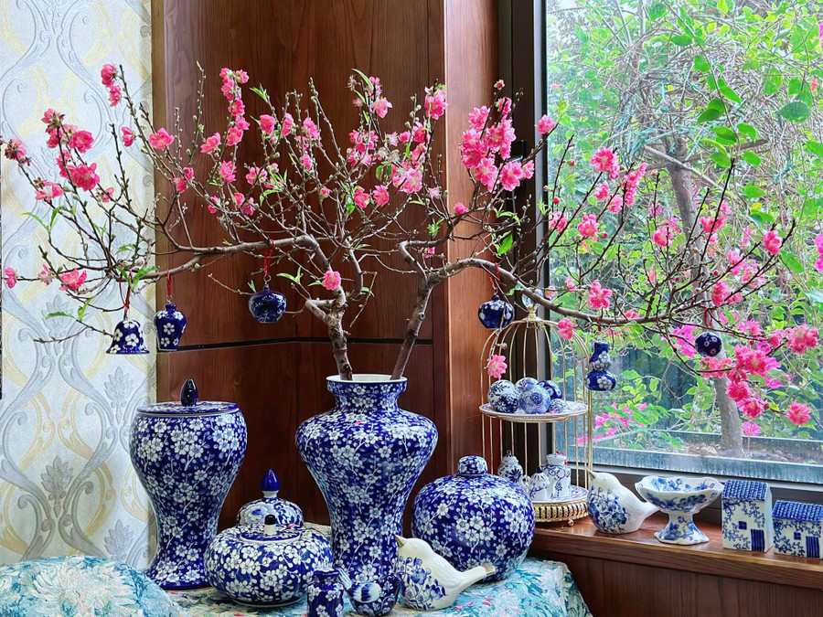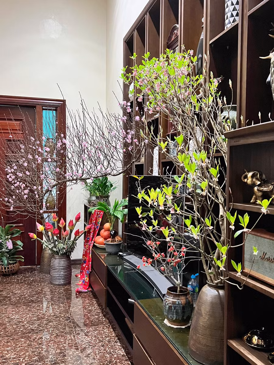 Chị Thanh Nhài (Quảng Ninh) cho biết, 3 năm trở lại đây chị đều trưng đào huyền dịp Tết. Với nhiều năm kinh nghiệm chơi hoa Tết, chị Nhài chia sẻ vài mẹo nhỏ để có một cành đào dáng huyền nở đẹp ngày Tết.