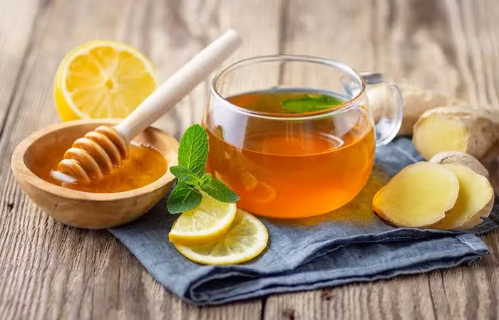 - Thêm nước cốt chanh, gừng nghiền và mật ong vào một cốc nước ấm.