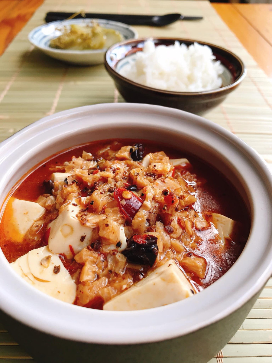 |   Đậu phụ đảo bông với ớt Hàn Quốc.  |