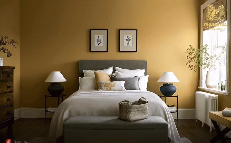 Màu vàng và màu nâu đất là màu bản mệnh của mệnh Thổ nên rất phù hợp trong việc chọn làm màu sơn phòng ngủ. Hai màu trên thể hiện sự hài hòa mà vẫn tinh tế, giúp bạn tránh những điềm không tốt đồng thời thể hiện sự chắc chắn, tiếp sức thúc đẩy thành công của gia chủ.