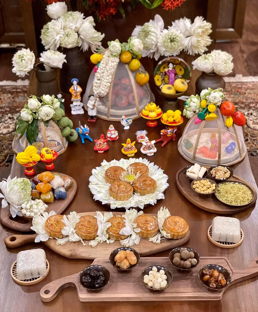 Bánh trung thu: Một trong những thứ luôn có mặt ở trong mâm cỗ Trung thu đó là bánh dẻo và bánh nướng. Bánh thường có hình tròn hoặc hình vuông được làm từ nguyên liệu truyền thống vô cùng thơm ngon và đẹp mắt.