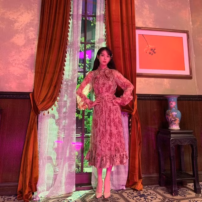 Nhận xét về thời trang của IU trong Hotel Del Luna, khán giả cho rằng người đẹp 28 tuổi biết cách ăn gian chiều cao nhờ sử dụng các item có phần cạp cao như quần lụa ống rộng, váy bút chì hoặc áo khoác có phần buộc eo cao.