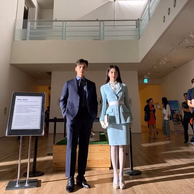 Thêm vào đó, để cân xứng với bạn diễn Yeo Jin Goo, IU phải sử dụng các mẫu giày cao gót trên 10 cm. "Em gái quốc dân" đi giày cao gót trong mọi hoàn cảnh, mọi cảnh quay. Đây cũng là bí quyết giúp đôi chân dài hơn đáng kể.