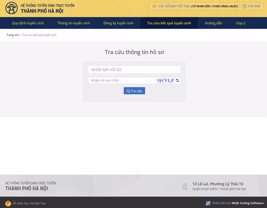 Phụ huynh vào trang Hệ thống tuyển sinh trực tuyến thành phố Hà Nội ở địa chỉ tsdaucap.hanoi.gov.vn, sau đó chọn "Tra cứu kết quả tuyển sinh".
