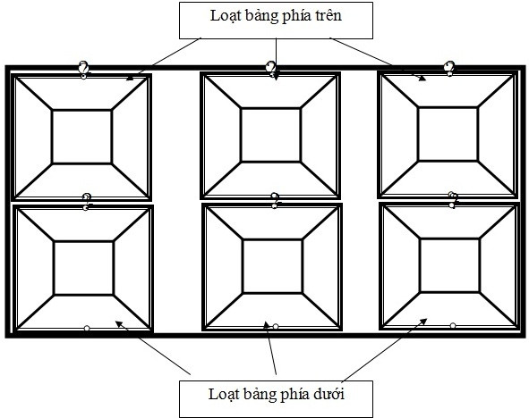 Khi thu bảng, giáo viên chia số bảng ra làm hai lượt, mỗi lượt 6 bảng, sau đó treo bảng lên bảng chính như hình vẽ minh họa dưới đây: