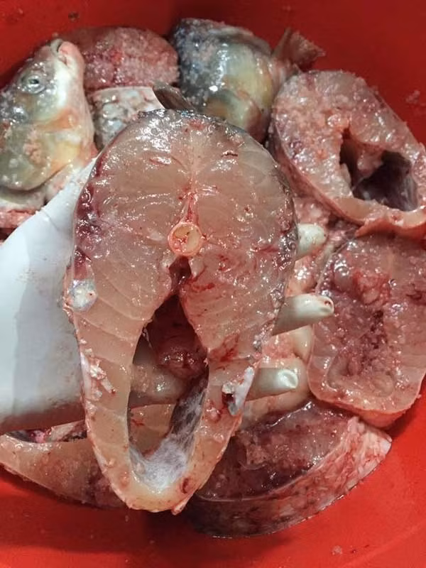 - Đun lửa nhỏ trong 6 tiếng tới khi cạn nước cho thịt và cá ngấm đều gia vị.