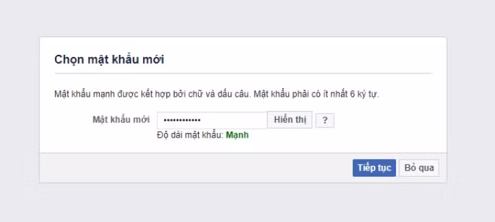Dù bạn chọn tùy chọn nào, bạn cũng đều đi đến cùng một nơi – màn hình hiển thị tùy chọn để bạn nhập mật khẩu mới. Chọn một mật khẩu thật mạnh, và sau đó nhấn nút Continue (Tiếp tục).