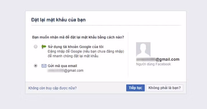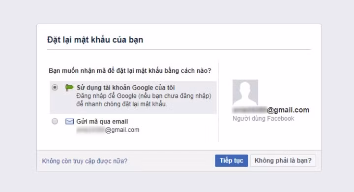 Tùy vào loại thông tin bạn cung cấp khi đăng ký tài khoản (và các thiết lập bảo mật bạn đã cấu hình), bạn sẽ nhận được các tùy chọn khôi phục mật khẩu khác nhau. Thông thường, Facebook sẽ cung cấp hai phương thức đặt lại mặt khẩu bao gồm: