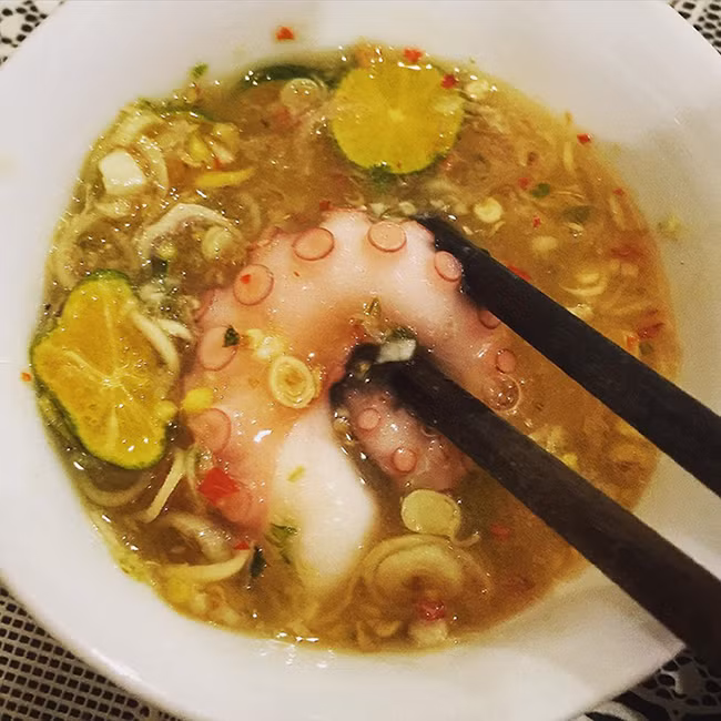 Để có nước chấm ngon, bạn nên sử dụng ngay nước luộc tôm (tôm dùng làm ruốc) thay vì nước lọc.