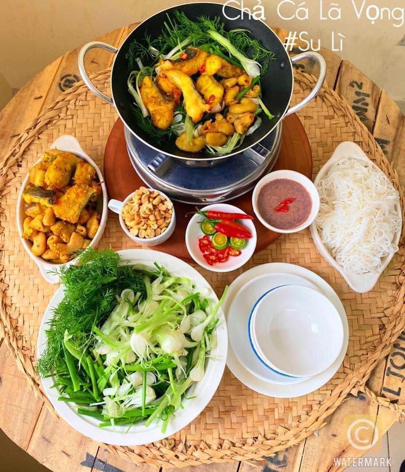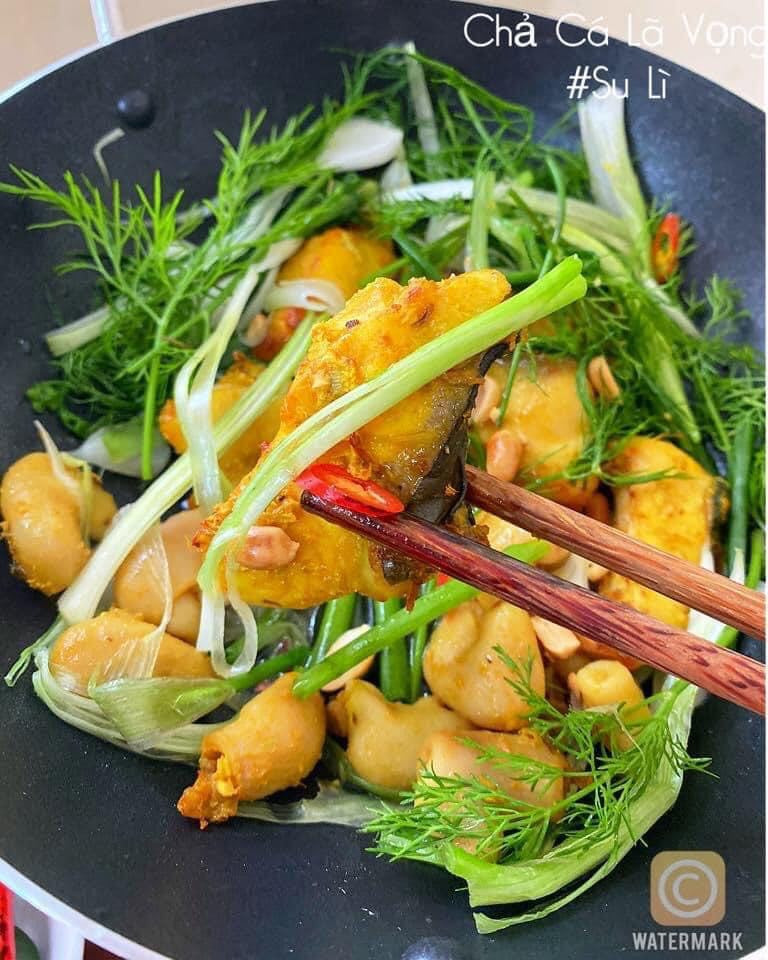 Món chả cá Lã Vọng đã hoàn thành ạ. Món ăn này ăn ngay trên chảo cho nóng sẽ rất ngon.