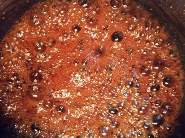 Dùng 1 chiếc nồi khác cho vào ½ thìa canh đường + ½ thìa canh nước lọc, đun đến khi chuyển màu cánh gián. Trong quá trình đun bạn chỉ lắc nhẹ nồi chứ không dùng đũa đảo kẻo bị lại đường nhé!